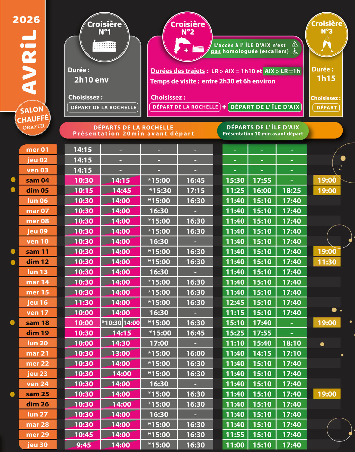 Discover our departure times